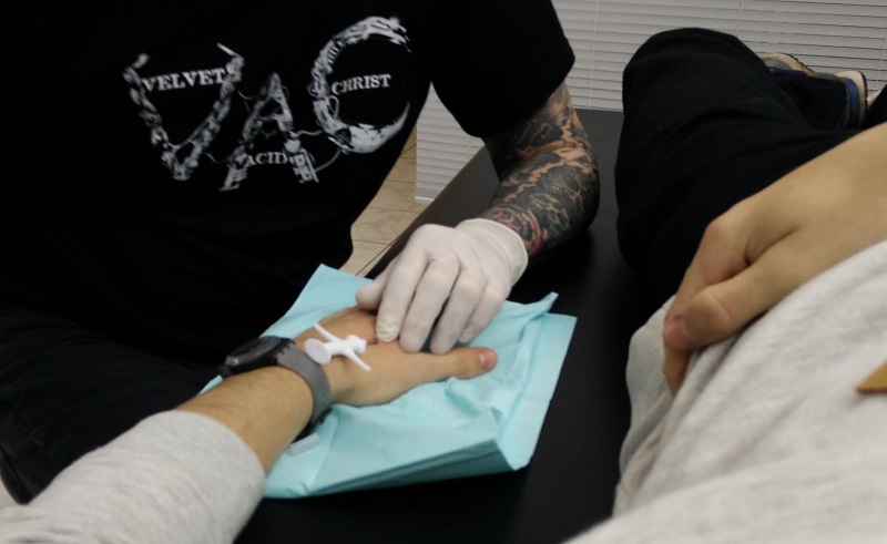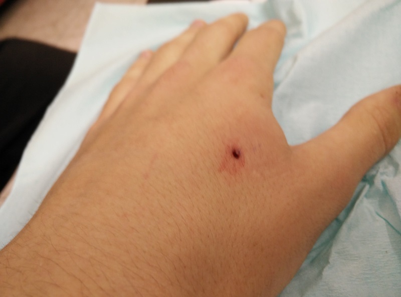 Zum Zoll durfte ich leider nicht. Das Päckchen kam obwohl der NFC-Chip in der Kanüle geliefert wurde, was beim durchleuchten des Päckchens sehr extrem nach einer Spritze Drogen ausgesehen haben muss, bei mir Zuhause an. Laut Tracking war es immer noch in LA. Papa: „Hast gesehen, ein Päckchen kam für dich.“, „Ja, habe ich gesehen, danke“, „Was hast du denn bestellt?“, „Also Papa,…….“ Da bei mir bald Prüfungen anstehen wollte ich alles so schnell es geht hinter mich bringen, damit bis dahin alles verheilt ist. Also schnell den Piercer angerufen und direkt 2 Stunden später einen Termin bekommen. Schnell noch einen Kumpel als Begleiter und Kameramann eingepackt, und die Party konnte beginnen.